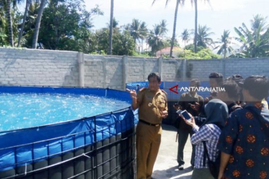 Ada dua tambak berkonstruksi plastik berbentuk lingkaran berdiamater sekitar 12 meter dengan tinggi satu meter yang mampu menampung air laut 50-an ton. Biaya konstruksi kedua tambak ini hanya Rp30 juta.