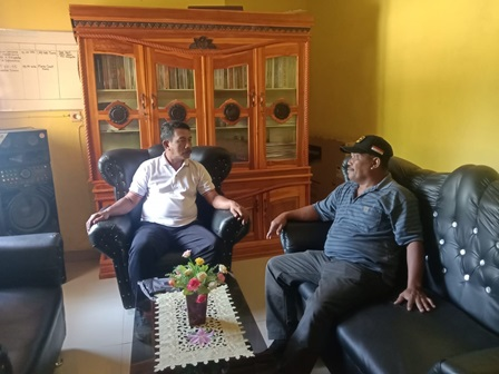 Kepala UPT Kawasan Konservasi Pesisir dan Pulau Pulau Kecil (KKP3K) Dinas Kelautan dan Perikanan (DKP) Sulawesi Tengah Jufri Lahmadi, melakukan koordinasi, tentang pengelolaan kawasan konservasi zona inti perairan di Parigi Moutong pada Camat Tomini Imran, Sabtu (4/3). FOTO: IST