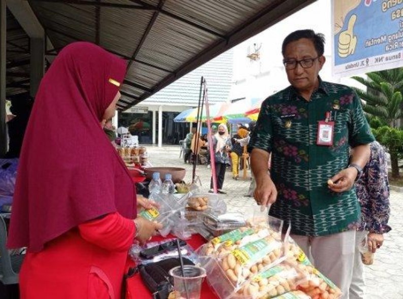 PASAR UMKM MAROSO - Kepala Dinas Kelautan dan Perikanan Sulteng, M. Arif Latjuba saat meninjau produk olahan perikanan di Pasar UMKM Maroso 2023, Kamis, 16 Maret 2023 | Foto: tribun