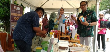 Kepala DKP Sulteng Arief Latjuba mengunjungi gerai UMKM dari Tolitoli yang ikut berpartisiapsi di Pasar UMKM Maroso 2023 di halaman kantor DKP Sulteng, Kamis (16/3/2023). Foto: Teraskabar,id