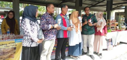 Kepala DKP Sulteng Arif Latjuba memperlihatkan produk UMKM pada Pasar UMKM Maroso, Kamis (16/3/2023) di halaman kantor DKP Sulteng. Foto: Abidin/PE